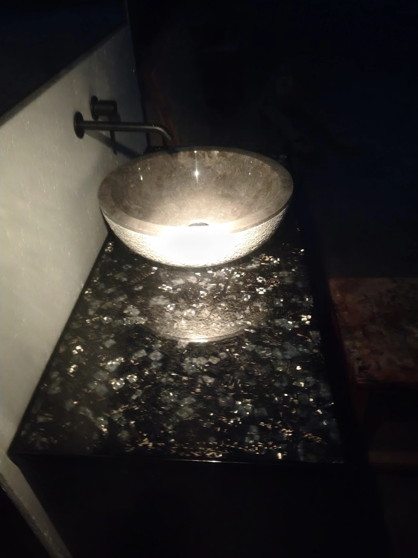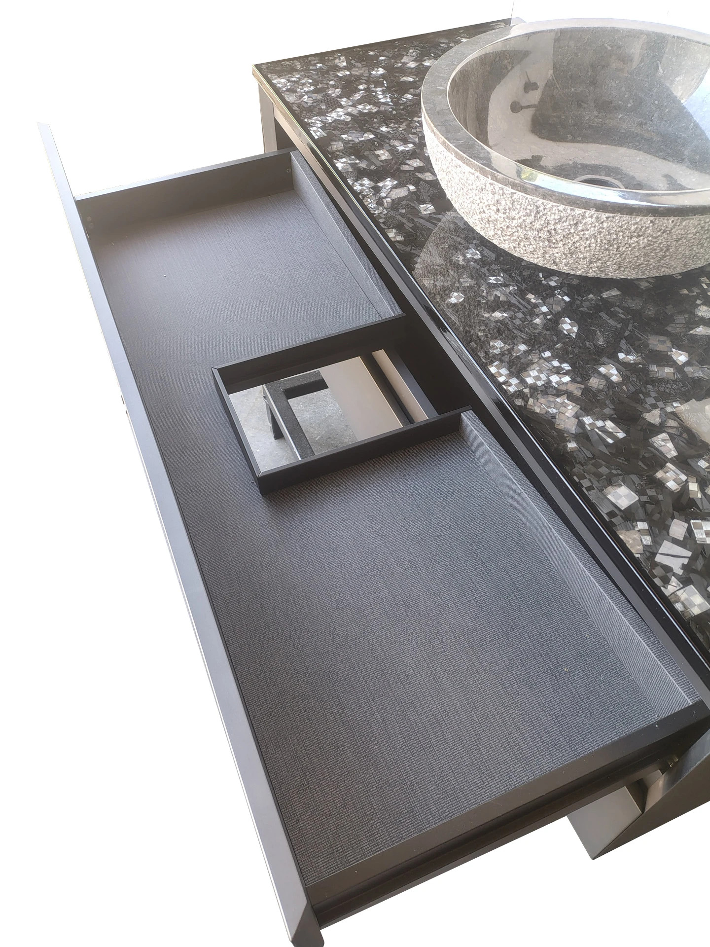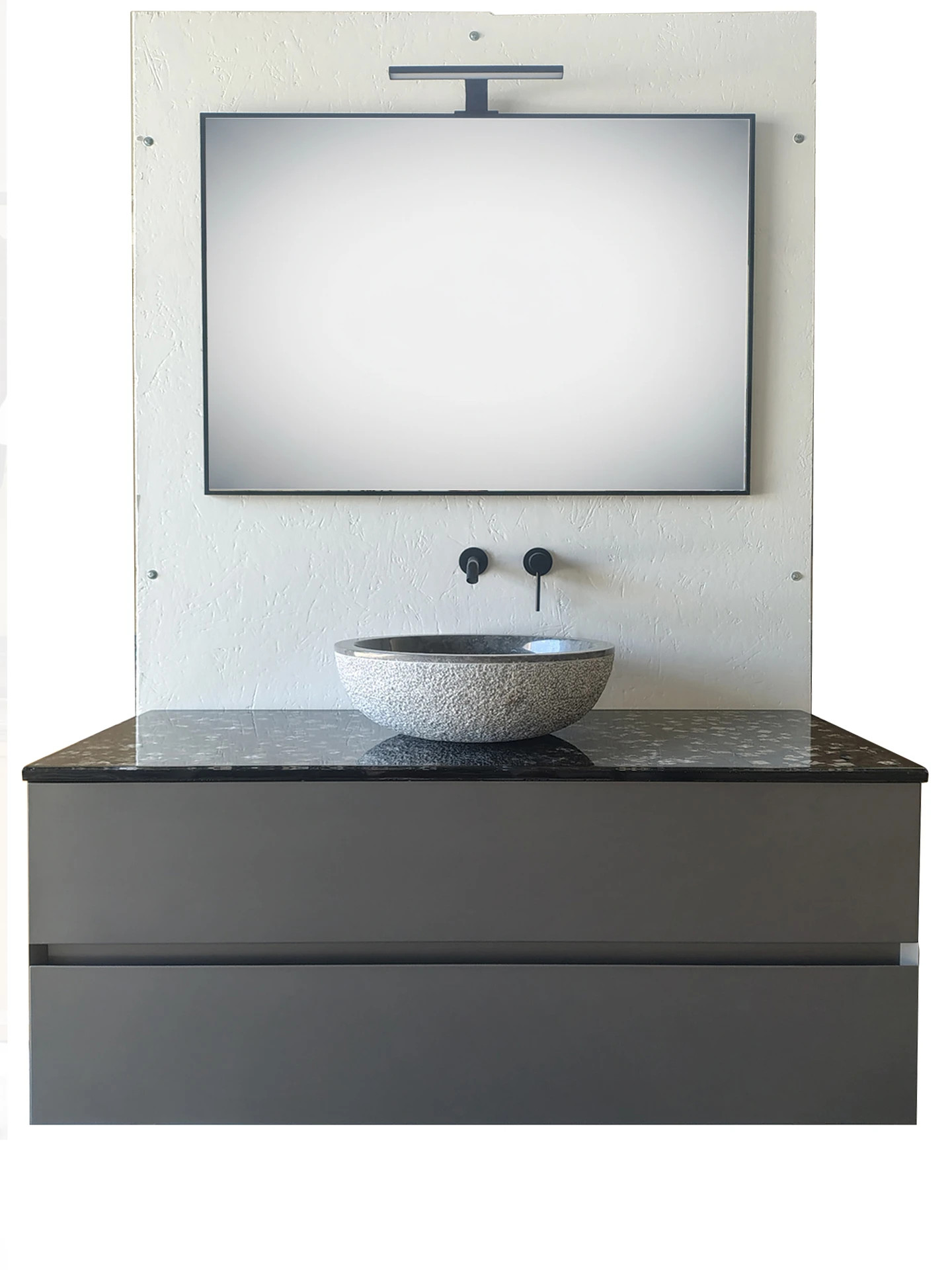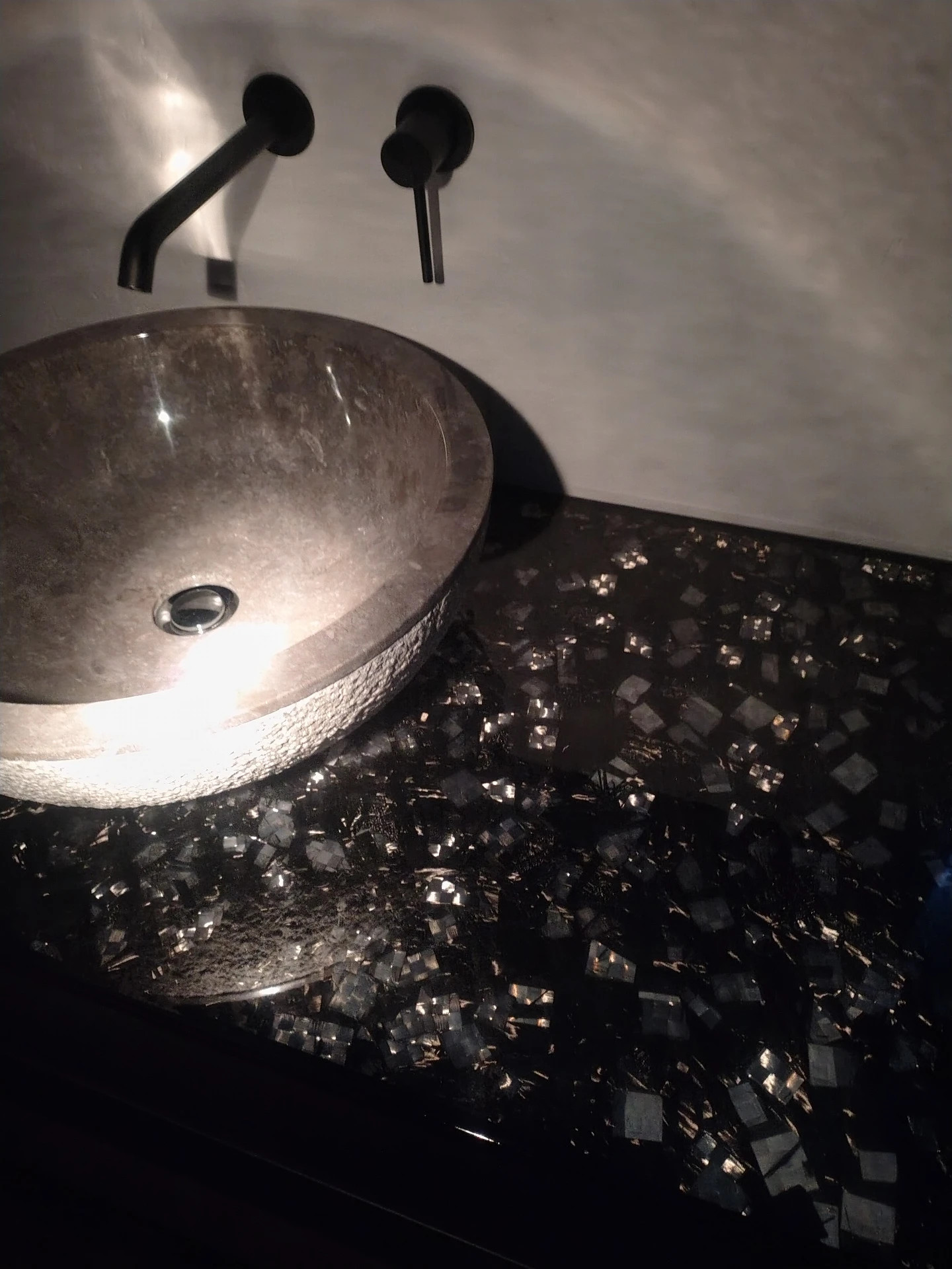 resina cristallina antigraffio coordinato da un lavello di pietra con