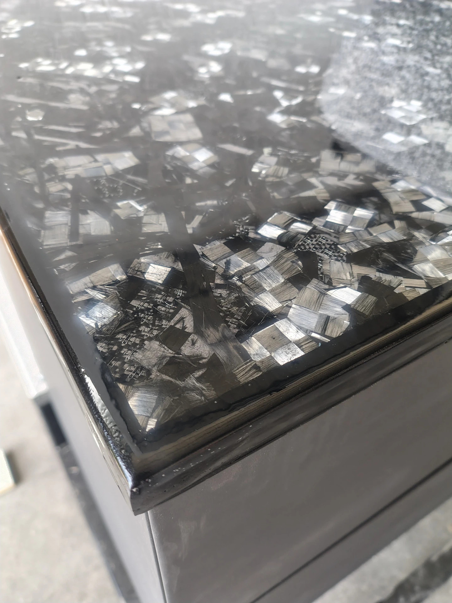 piano di appoggio e' realizzato da un collage di fibra di carbonio e
