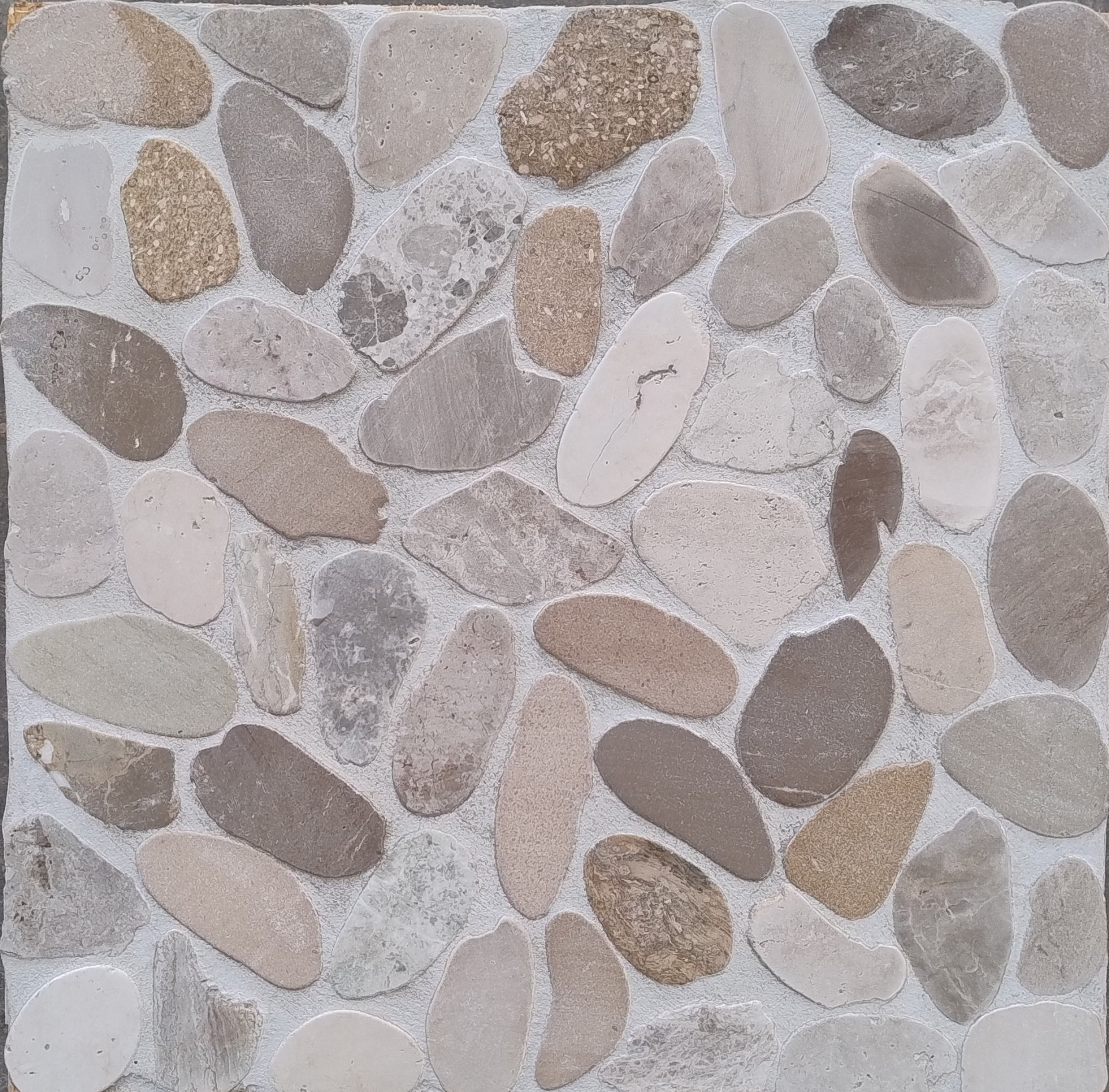 EL SAISO e' una azienda specializzata nel taglio e nella lavorazione dei ciottoli di fiume. Il nostro fornitore pricipale e' il Piave, da qui una accurata selezione dei sassi nella vagliatura porta alla segagione di questi ciottoli per creare fettine di sasso calibrate nello spessore di 1 cm, i quali possono essere forniti sia sciolti imballati su sacchetti di un metroquadro sia incollati su rete per facilitare la posa. Questo prodotto e' adatto a ogni tipo di pavimento interno/esterno, l'uso del ciottolo segato su marciapiedi, bagni, piatti doccia , piscine, ingressi e rivestimenti cucina garantira' un risultato unico nel suo genere. Per l'utilizzo interno si consiglia un trattamento idro-olio repellente effetto bagnato per ottenere l'antimacchia e una facile pulizia. EL SAISO e' un prodotto garantito per sempre.