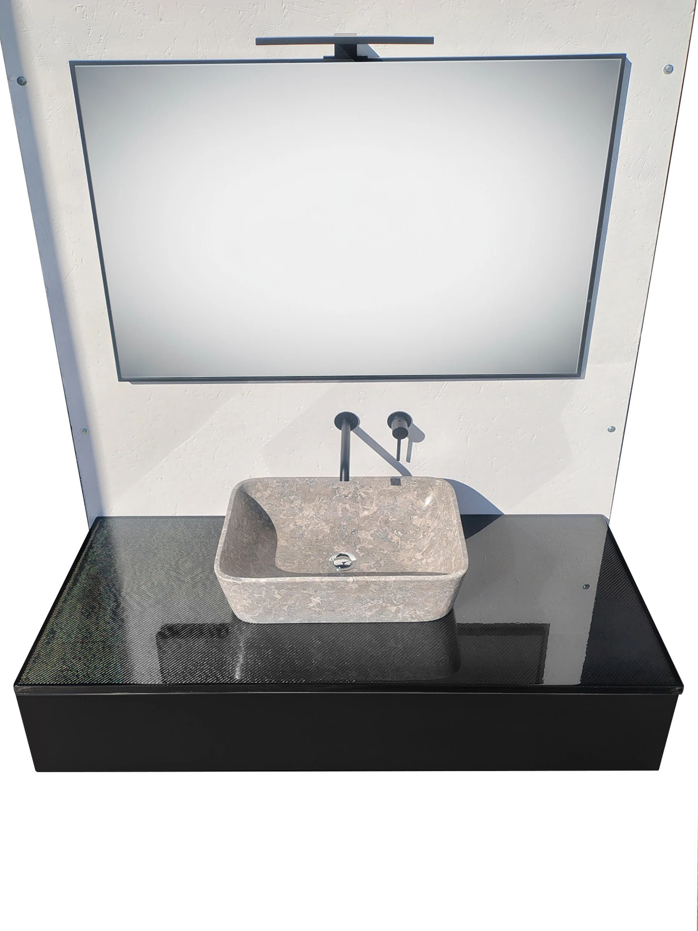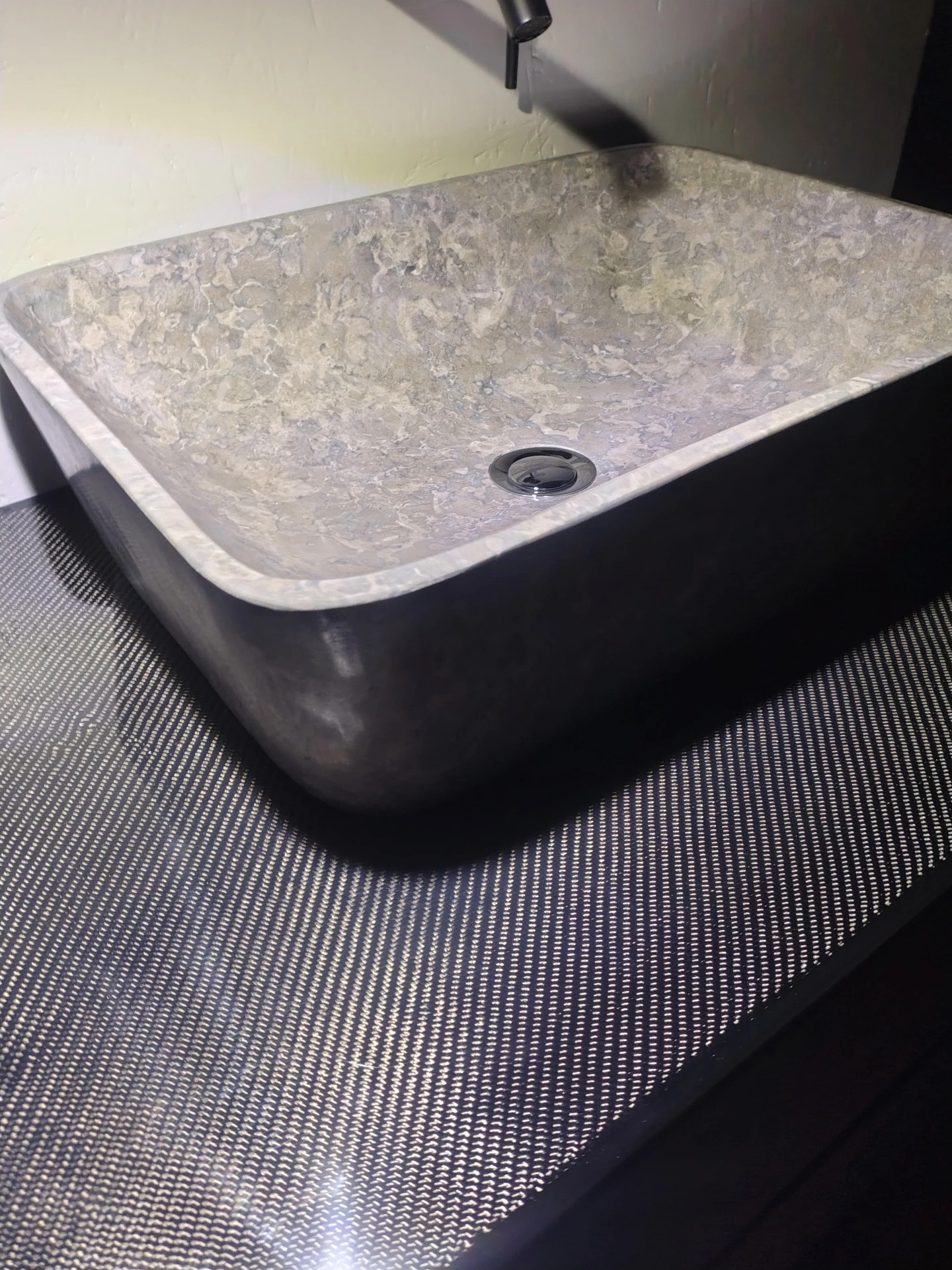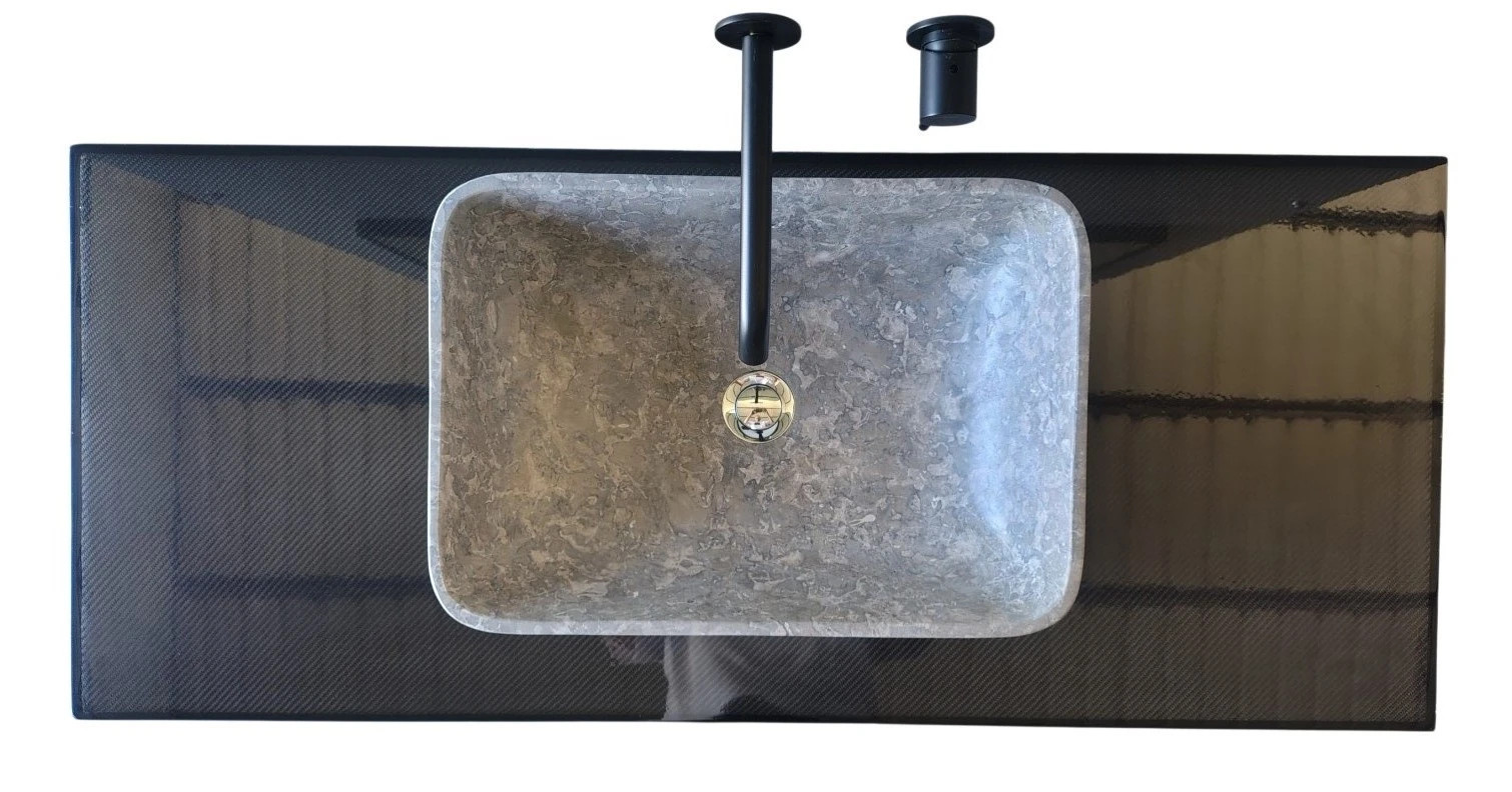 resina cristallina antigraffio coordinato da un lavello di pietra grigia misure 35 x 50 cm con finitura
