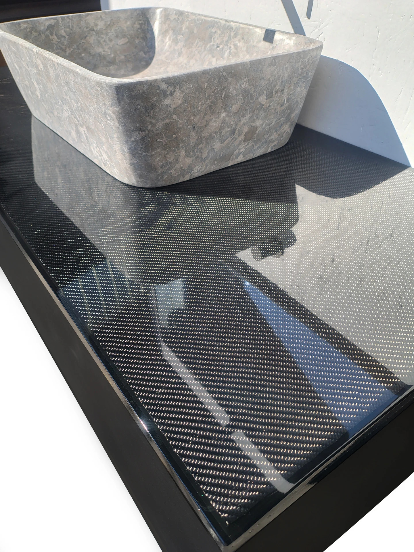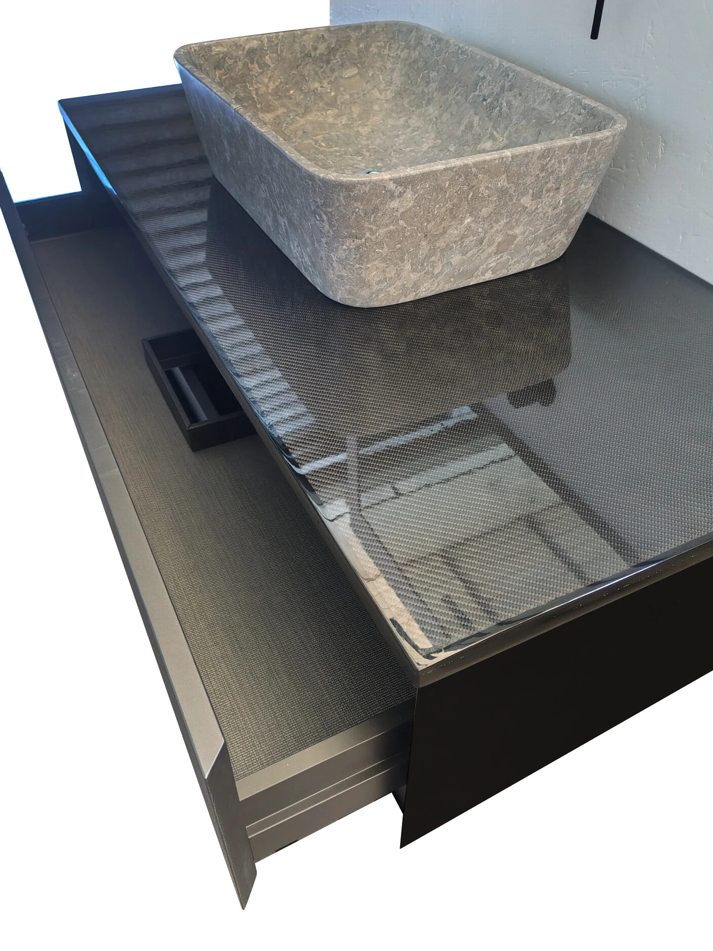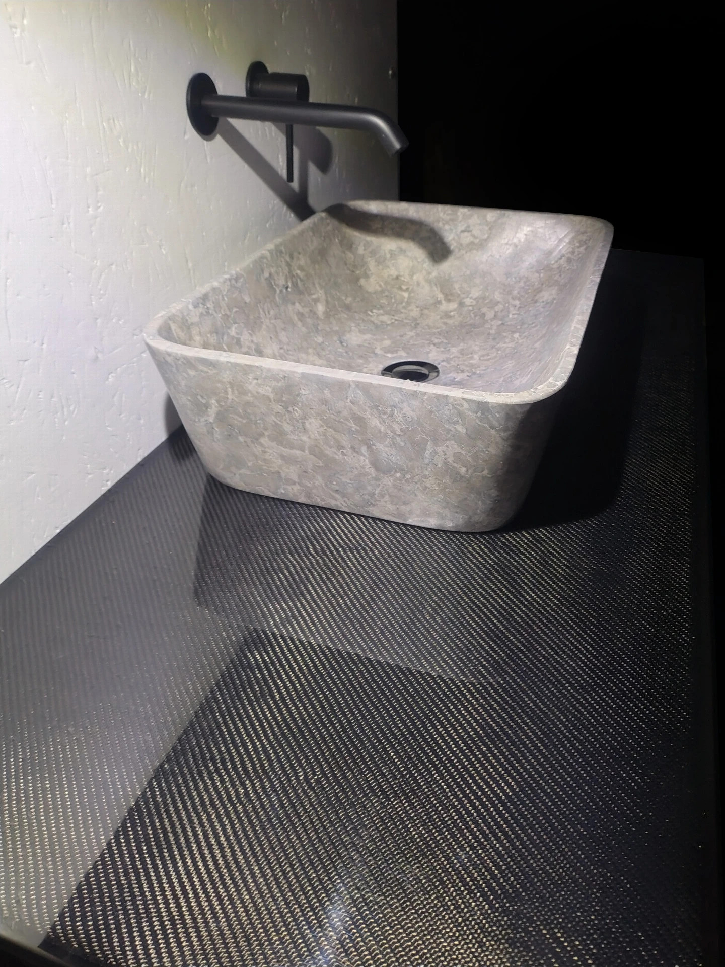 resina cristallina antigraffio coordinato da un lavello di pietra grigia misure 35 x 50 cm con finitura